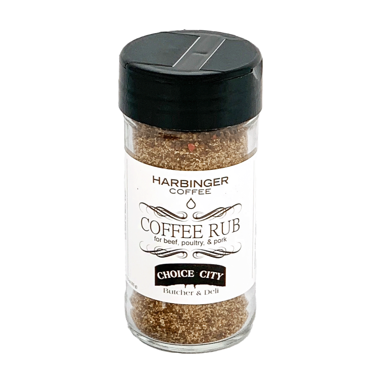 Ingredients: Harbinger Coffee, Kosher Salt, Garlic, Pink Peppercorn, Brown Sugar, Cayenne, Clove, Cinnamon, Mace
