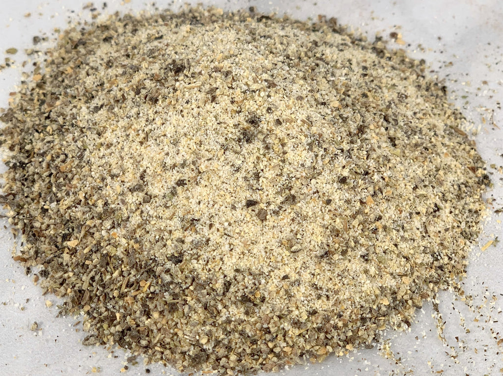 Ingredients: Sea Salt, Onion, Garlic, Black Peppercorn, Mexican Oregano, Cumin, Lemon Peel