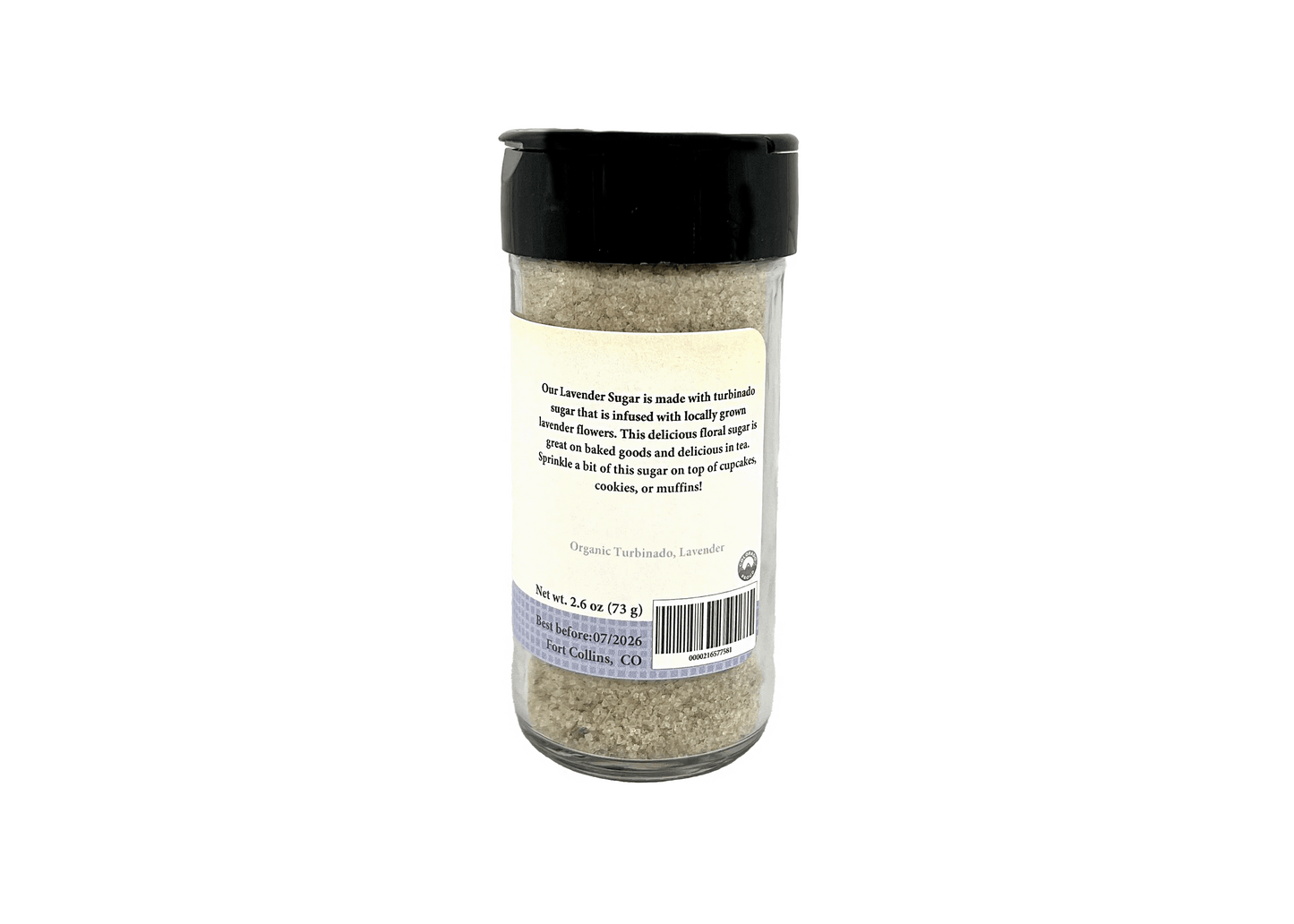 Notre sucre de lavande est fabriqué avec du sucre turbinado et infusé de fleurs de lavande cultivées localement dans le Colorado. Ce sucre est excellent dans les pâtisseries et délicieux dans le thé. Ajoutez un peu de ce sucre sur vos cupcakes, biscuits ou muffins !