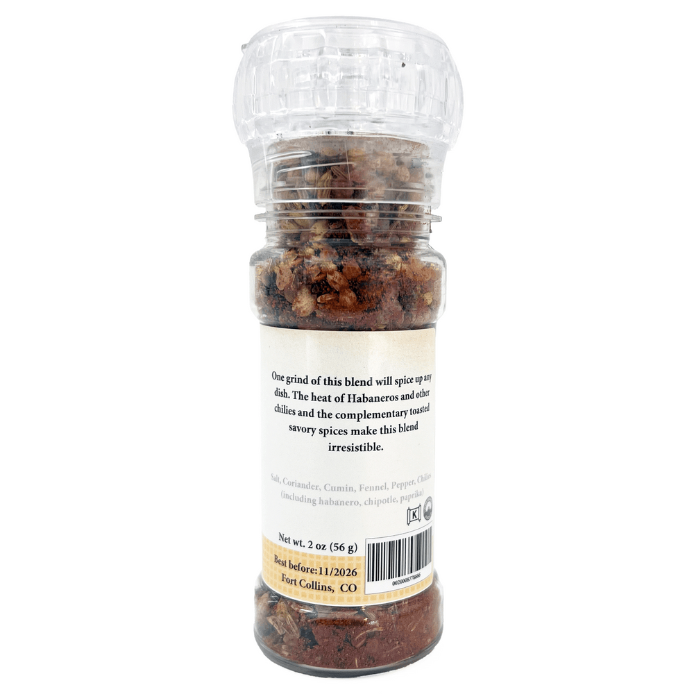 Une mouture de ce mélange pimentera n’importe quel plat. La chaleur des Habaneros et des autres piments met en valeur les épices grillées et savoureuses pour constituer un complément irrésistible à votre sauce ou marinade préférée. Idéal pour griller !