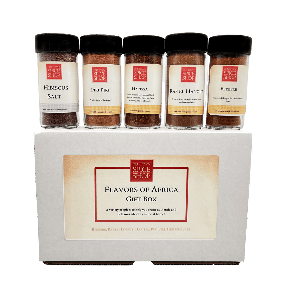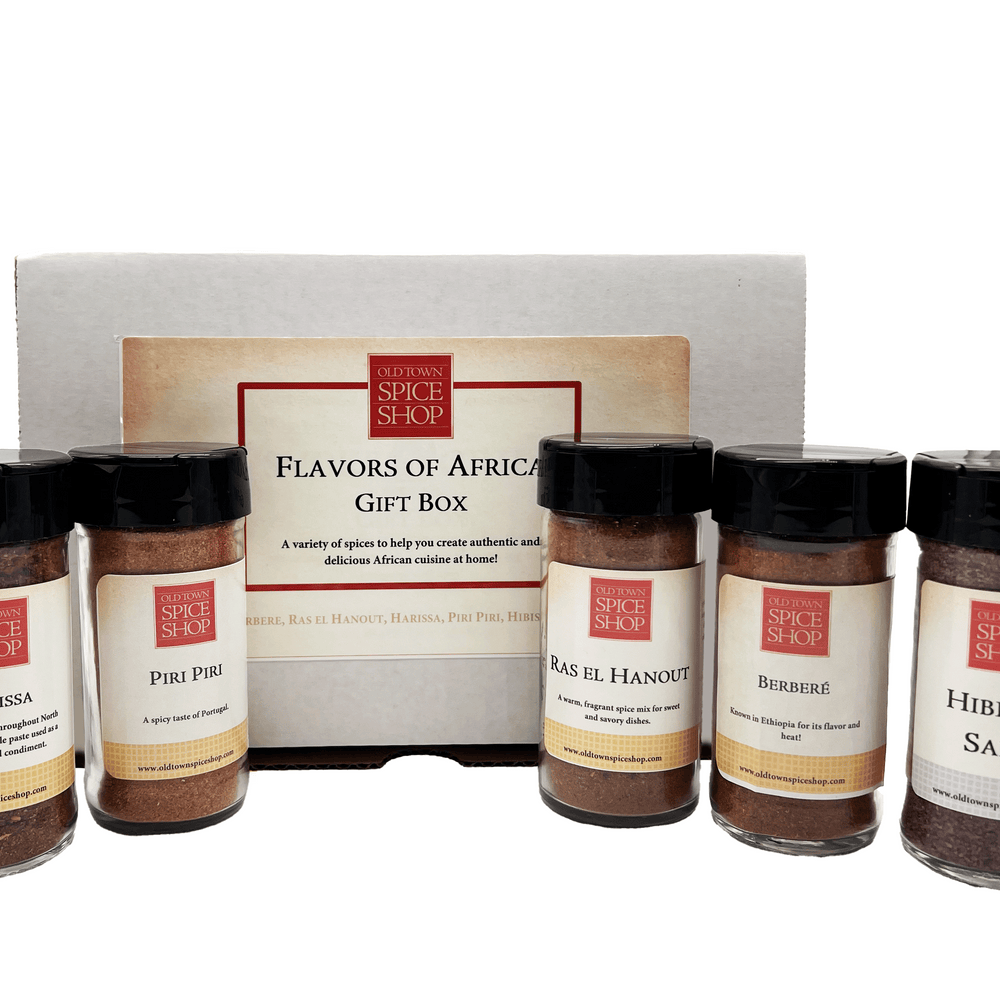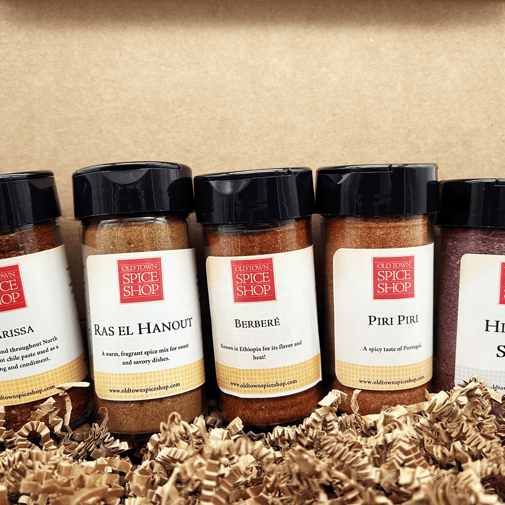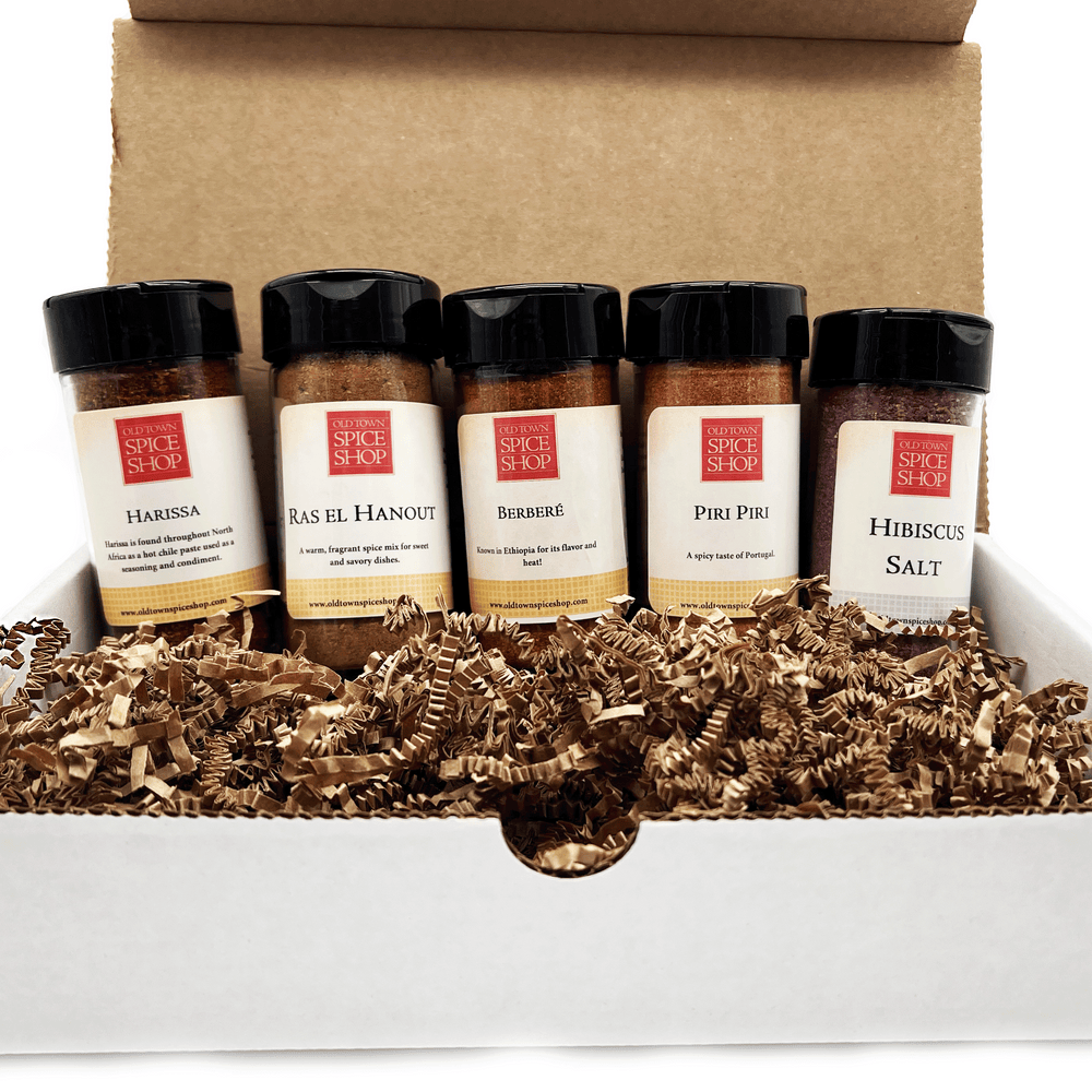 Pot de Berbère de 2 oz, Pot de Ras el Hanout de 1,9 oz, Pot de Harissa de 2 oz, Pot de Piri Piri de 2,7 oz, Pot de sel d'hibiscus de 2 oz