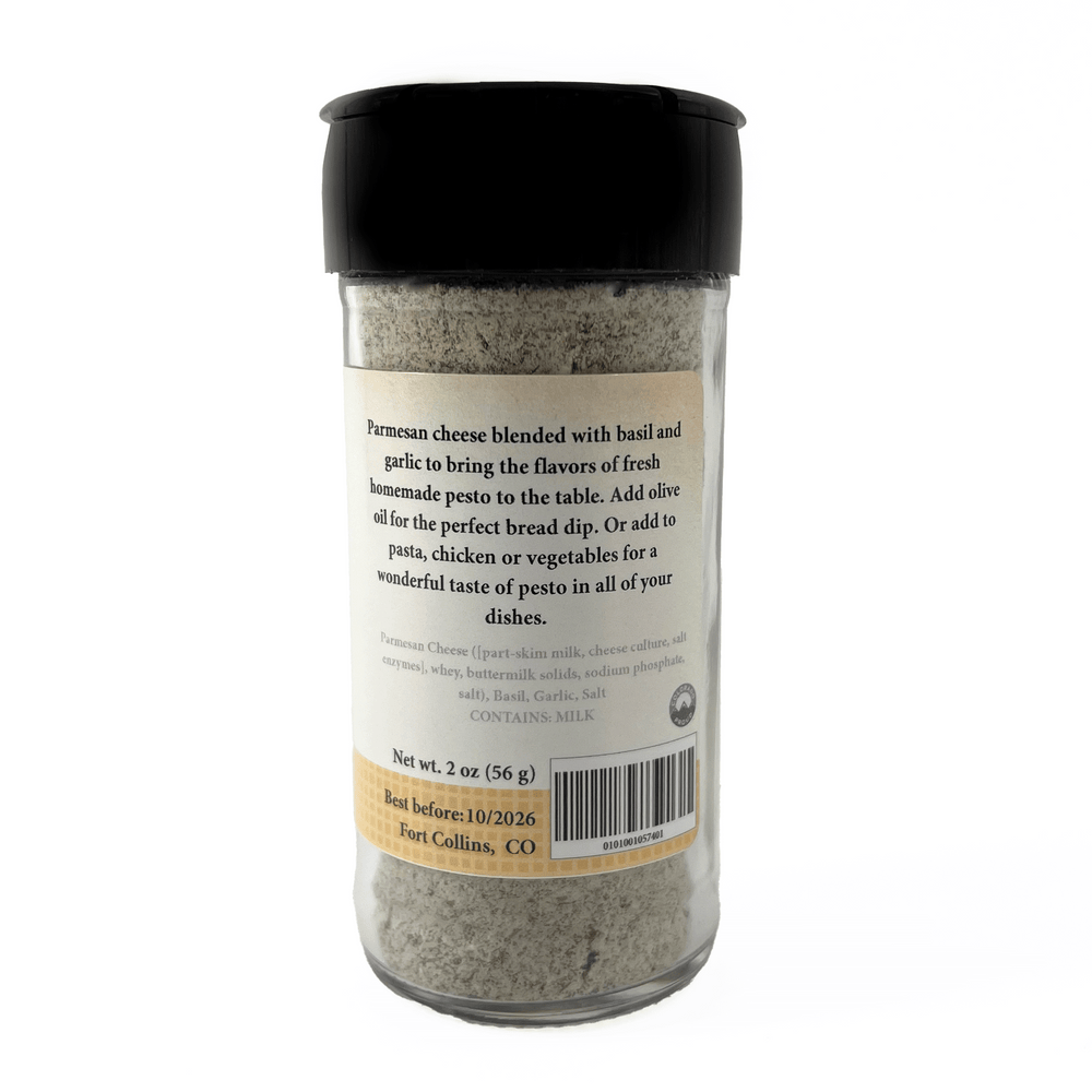 Du parmesan mélangé avec du basilic et de l'ail pour apporter les saveurs du pesto frais maison à la table. Ajoutez de l’huile d’olive pour une trempette de pain parfaite. Ou ajoutez-le aux pâtes, au poulet ou aux légumes pour un merveilleux goût de pesto dans tous vos plats.
