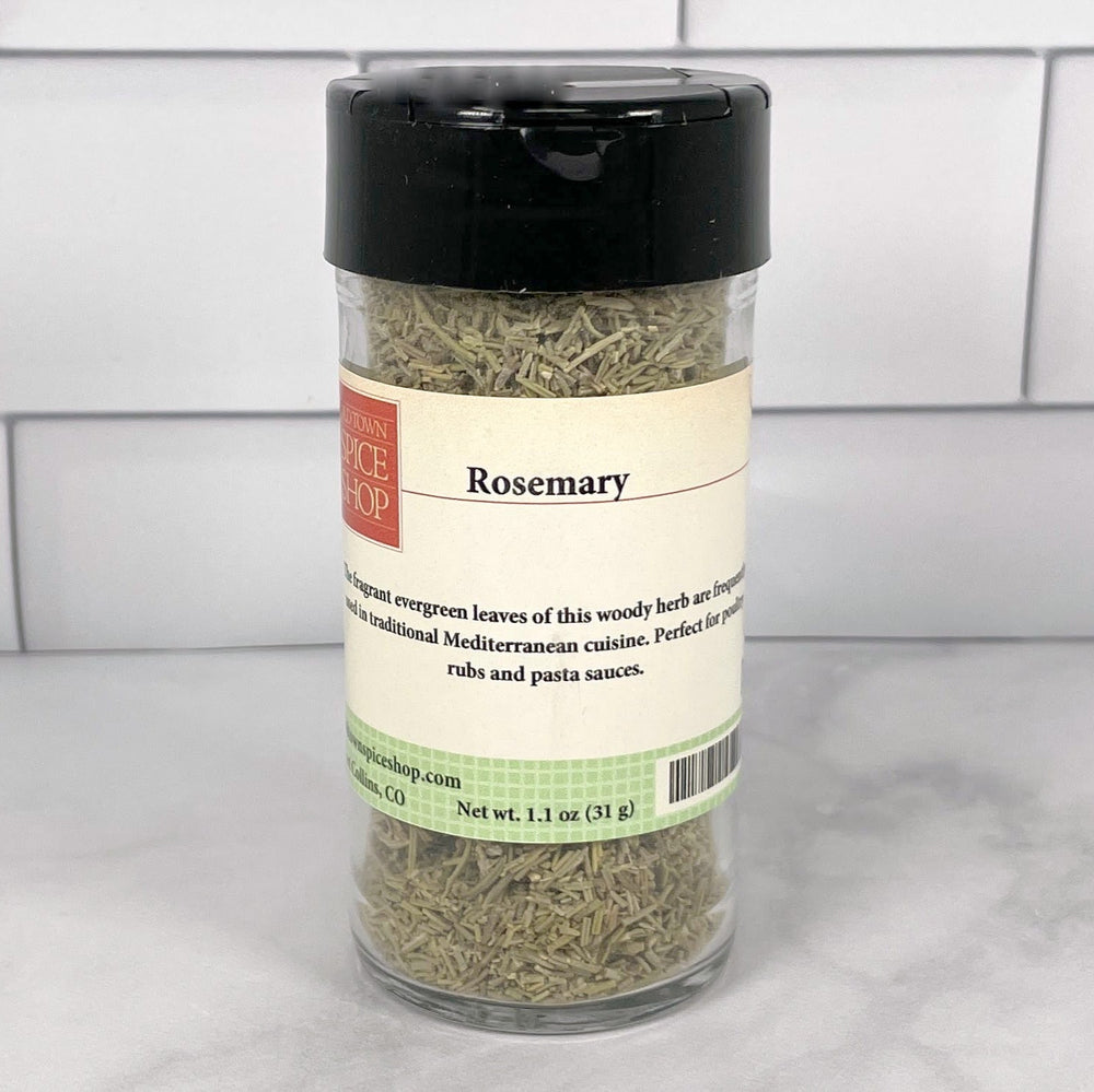 Le romarin est constitué des feuilles séchées du Rosmarinus Officinalis à feuilles persistantes. Le romarin a un arôme boisé de pin distinctif avec des nuances camphrées et une saveur fraîche et douce-amère. Le romarin se trouve dans le bouquet garni, les herbes de Provence et dans les mélanges d'assaisonnements pour l'agneau et les cuisines méditerranéennes.
