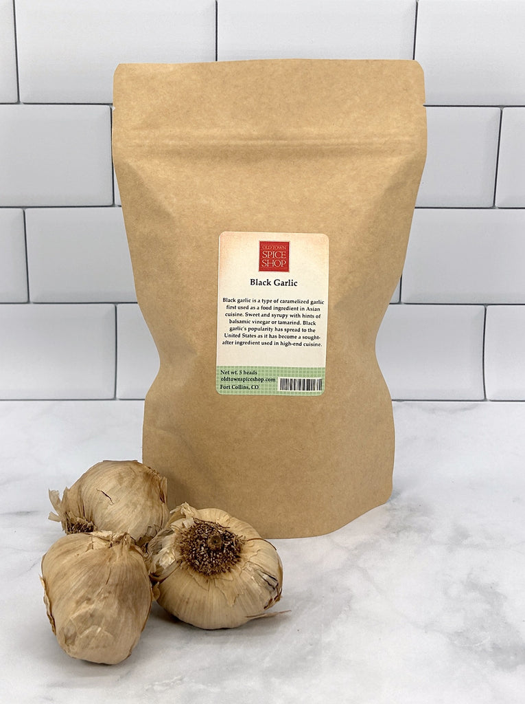 Black Garlic is a type of caramelized garlic first used as a food ingredient in Asian cuisine. Sweet and potent with hints of balsamic vinegar or tamarind. Black Garlic's popularity has spread to the United States as it has become a sought-after ingredient used in high-end cuisine.