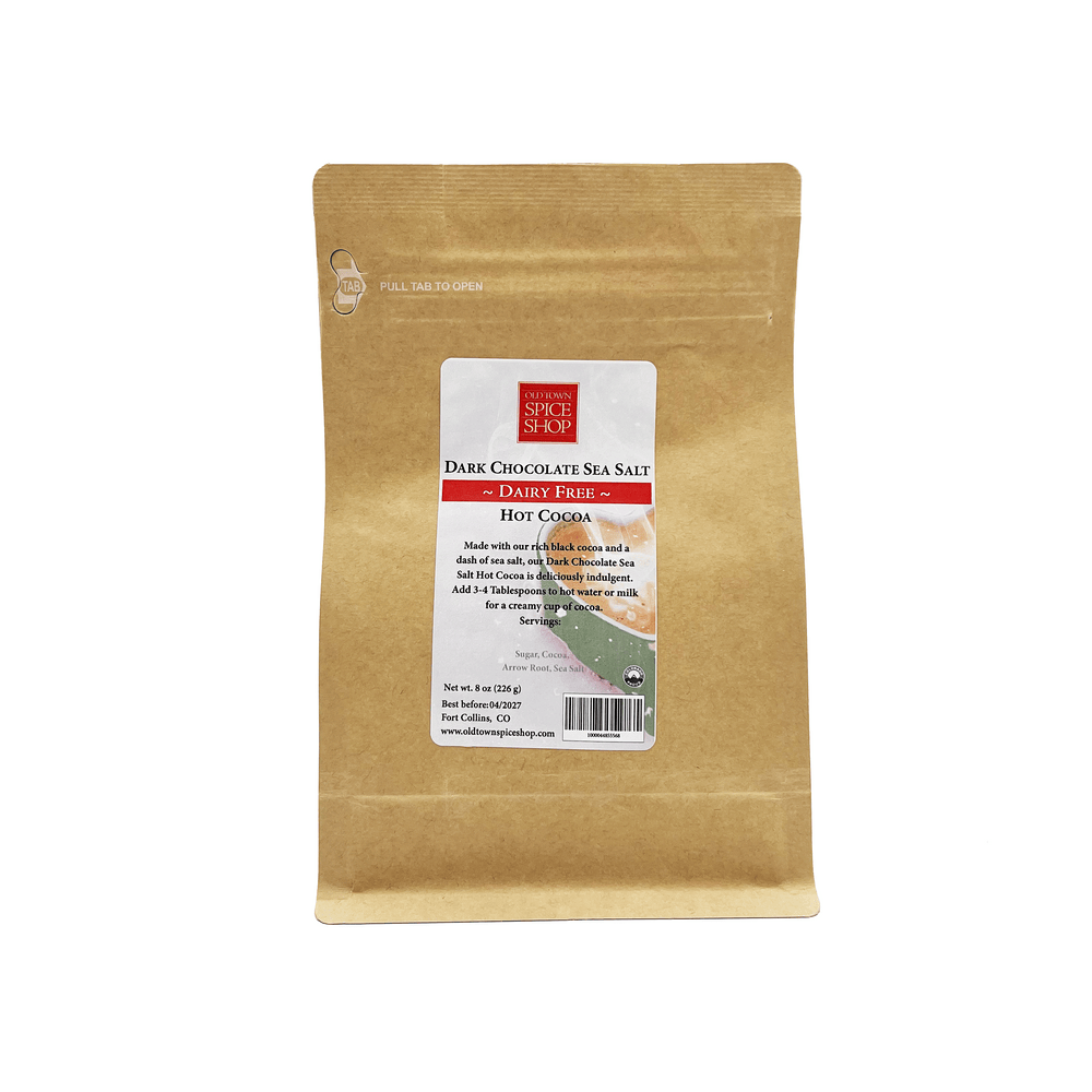 Crafted with our rich black cocoa and a hint of sea salt, our Dairy-Free Dark Chocolate Sea Salt Hot Cocoa offers a deliciously indulgent experience without any dairy.