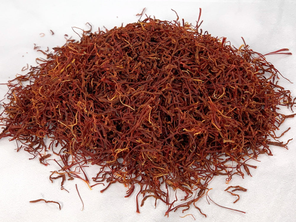 Saffron is the dried stamens of the crocus flower, a member of the iris. Saffron's aroma is often described by connoisseurs as reminiscent of metallic honey with grassy or hay-like notes, while its taste has also been noted as hay-like and sweet. Saffron also contributes a luminous yellow-orange coloring to foods. Saffron is widely used in Iranian (Persian), Arab, Central Asian, European, Indian, Turkish, and Cornish cuisines.
